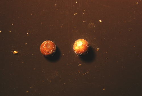 | 1. Furchungsteilung. Die Keime befinden sich im 2-Zell-Stadium. |